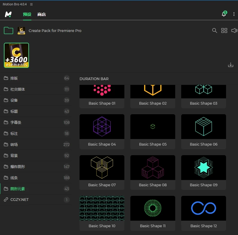 包含1125种社交媒体时尚图形元素,包含:文字标题、字幕条、发光线条、爆炸图形、排版背景等动画,共11种类型。采用Motion Bro 4脚本扩展,所有的文字、图片等都可以修改,可视化效果预览,需要那种效果双击即可生成,使用十分方便。