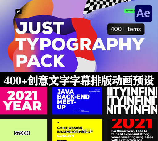 AE/PR脚本|400种现代创意文字标题动态排版字幕条动画预设 Just Typography Pack