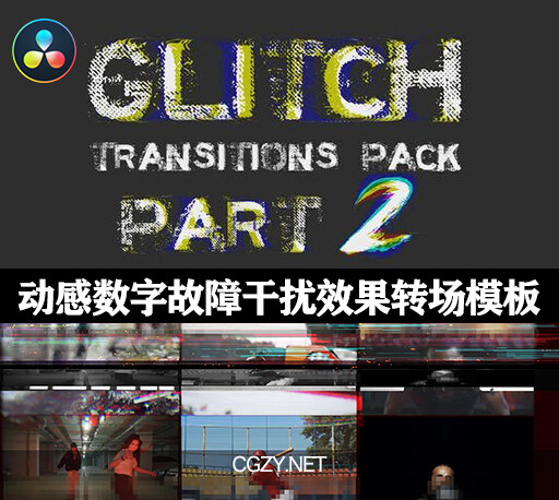 达芬奇模板|10种动感数字故障干扰效果转场模板 Drag-N-Drop Glitch Transitions V.2