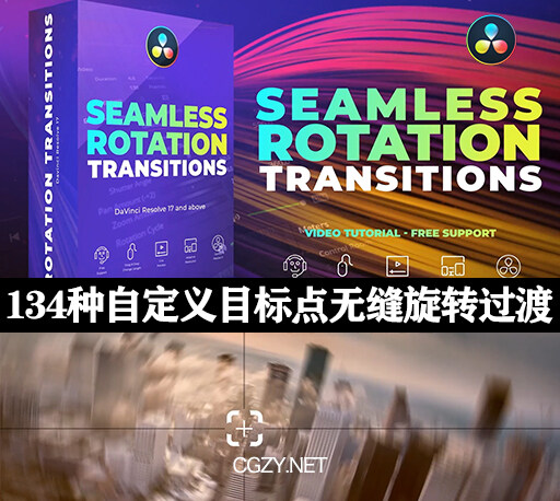 达芬奇模板|134种自定义目标点无缝旋转过渡转场预设模板-Seamless Rotation Transitions