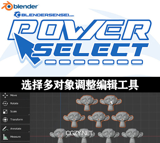 Power Select combines Blender’s Box Select and Tweak Selection modes. With one click you can tweak an object, or box select multiple objects then immediately move your selection with just your mouse. It also has other awesome features like double-click to enter and exit Edit Mode, auto enable cage-edit for modifiers, transparency select, fill select, quick group selection and creation, and much more!