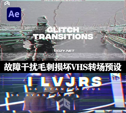 AE模板|170种数字损坏故障干扰失真毛刺VHS转场预设 Glitch Transitions