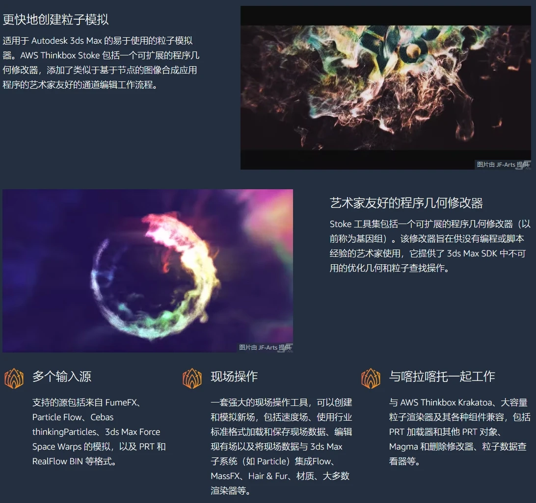 Thinkbox StokeMX v2.6.0一个易于运用的3DS MAX粒子模仿软件,旨在简化和加快由速度场驱动的高容量颗粒云的创立,支撑的速度场的来历,包含FumeFX模仿和Thinkbox Stoke速度场,别的粒子动画流,Thinkbox思想粒子或PRT或Reallow的BIN格局的外部颗粒文件序列,3 DS MAX将强行SpaceWarps等。