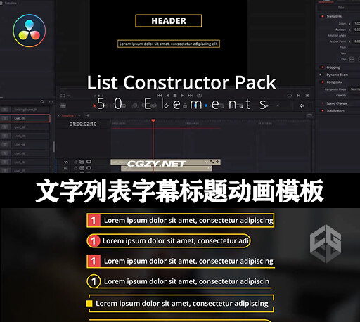 这是一套包含50种文字列表动画字幕标题,包括:动画标题,动画,项目符号列表,干净,企业,平面,介绍,列表,列表标题,下三分之一,最小,包,演示,促销,简单,文本,标题动画,标题,排版,适用于DaVinci Resolve 17或更高版本。需要的小伙伴赶快下载吧!