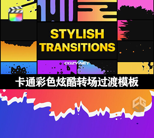 FCPX插件|12组4K卡通彩色炫酷转场过渡模板 Stylish Transitions