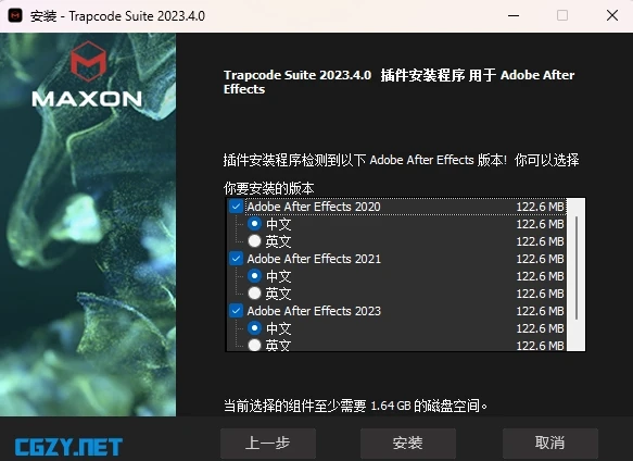 特别说明:安装包集成Maxon App一键式安装!可以选择中文/英文插件语言;插件名称均保留英文名;部分英文由于有BUG未做汉化;做项目套AE模板等,建议用英文原版;汉化程序为一键安装,可自动识别软件插件目录,我们仅提供插件工具,不提供任何插件使用教学。Particular和 Form插件独立预设界面无法汉化,保留英文界面。