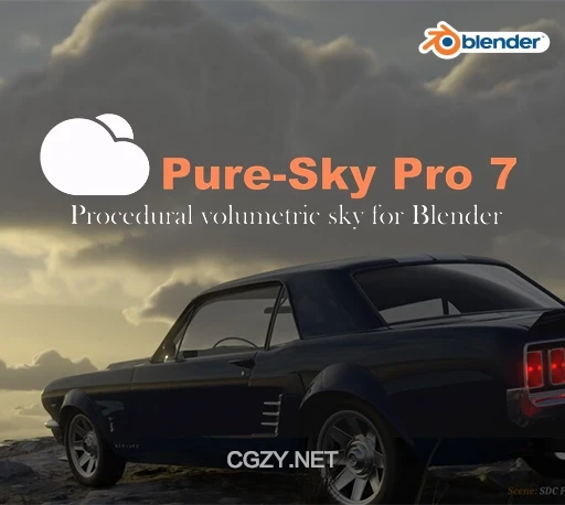 Pure Sky (Eevee & Cycle)是Blender一个程序化天空系统丁达尔光效果生成插件。这个插件可以满足了我们对一个强大天空系统的大部分要求,如天空中云的影子可以直接投射在地面上,并轻松实现穿云而过的丁达尔光效果,并且云可以做动画;能一键显示暴风雨天气;提供360°的天空空间展示;能通过大气、云自动检测日落效果;能在场景中生成体积云,并可以在任何方向延伸到无限远;具有自动检测障碍物的实时镜头光晕和镜头污垢(AE里的OF镜头光晕都可以省了);可以轻松地做出星星、月亮、暮光、彩虹、程序化龙卷风等天气效果。
