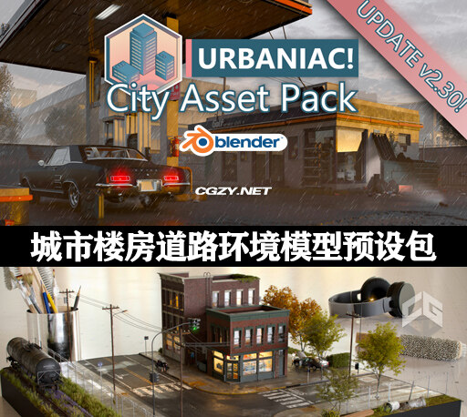 Urbaniac! City Asset Pack包含106组城市道路、街道、高速公路、人行道、红绿灯、楼房建筑、招牌、垃圾、公共设施等多种模型预设,可以自定义场景环境,比如灯光、下雨、红绿灯控制等。