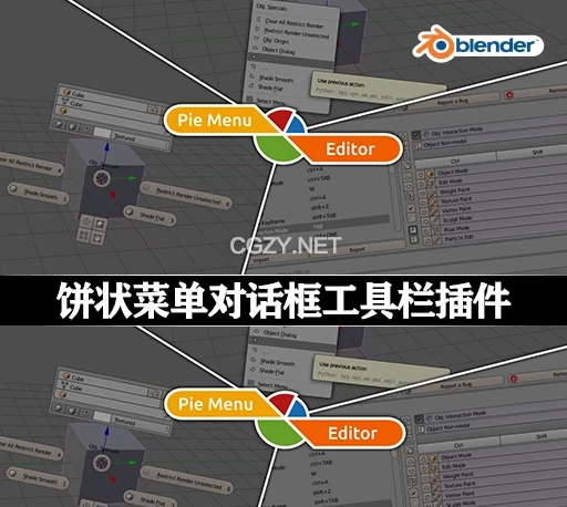 Pie Menu Editor插件,允许您创建饼形菜单、菜单、弹出对话框、侧面板和工具栏,而无需编码。