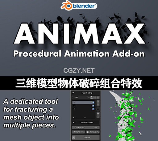 ANIMAX是一个用于Blender的程序化破碎组合插件,它使多个对象的动画制作变得简单。它允许您创建复杂的动画——使用 Blender 的内置动画工具很难实现——更快、更容易。
