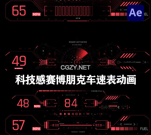 AE模板|科技感赛博朋克车速表动画 HUD Cyberpunk Speedometers