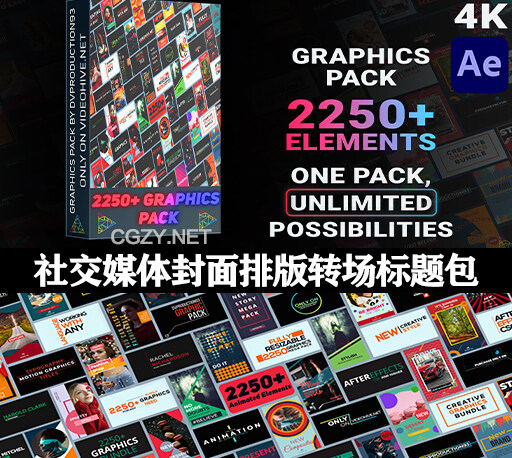 AE模板|2250组社交媒体呼出线条标题转场封面排版设计图形动画 Graphics Pack