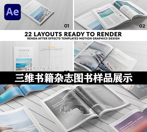 AE模板|三维书籍杂志图书封面翻页动画内容展示 Magazine Book Promo