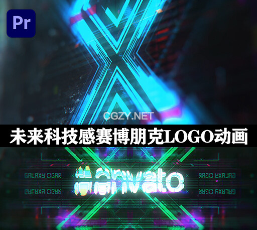 PR模板|未来科技感赛博朋克LOGO标志动画 Cyberpunk Logo Animation