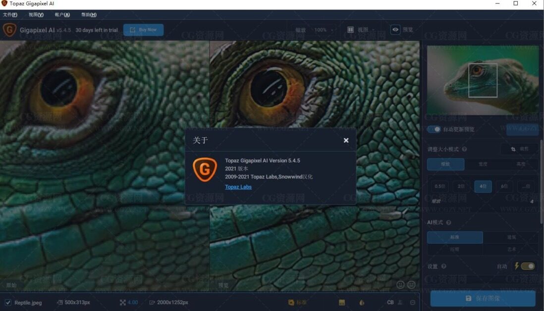 本人亲测!如果按教程操作,Topaz Gigapixel AI v5.4.5 确实是完整汉化版;注:汉化补丁其他版本应该不通用。