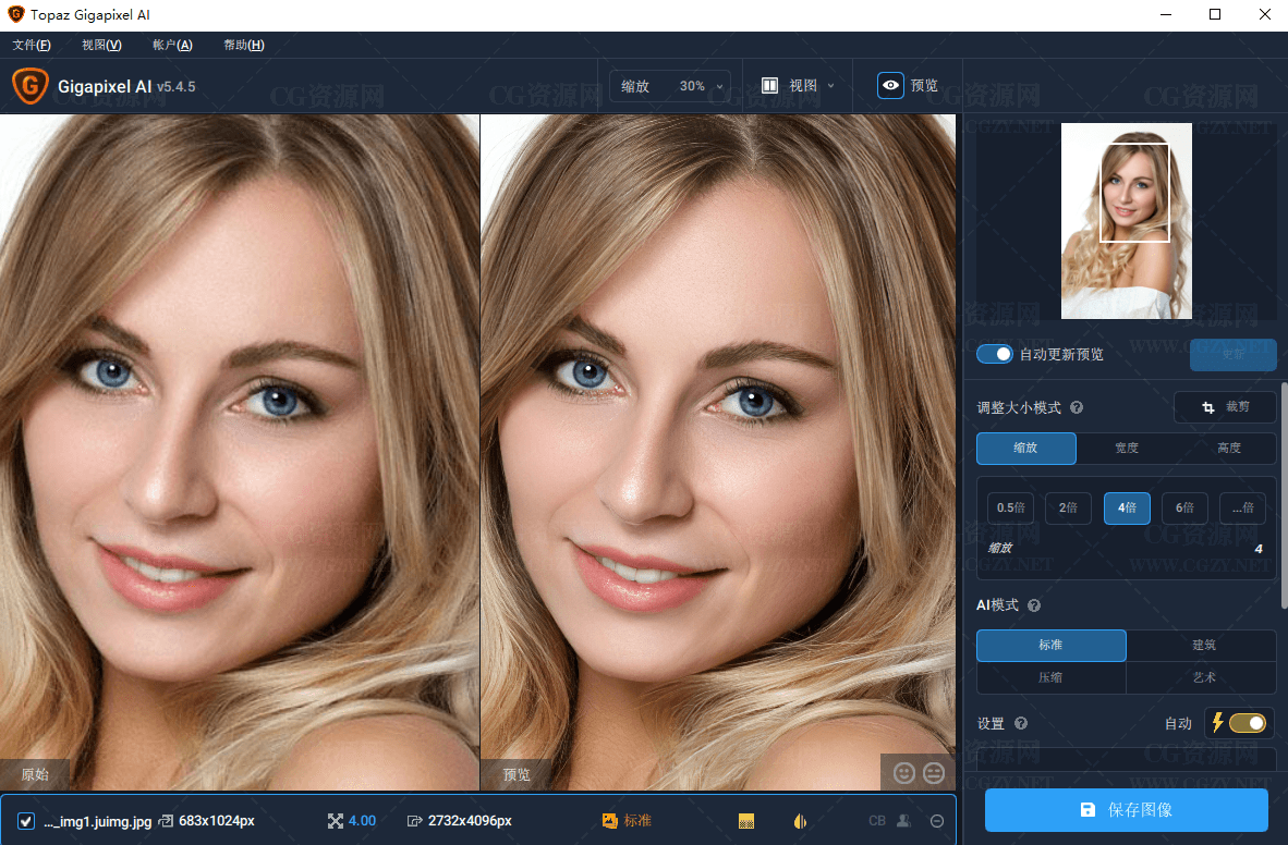 Topaz Gigapixel AI中文破解版是一款非常专业的电脑端图片无损放大软件。有时候你想要放大图片,但是图像会变得非常模糊,不清晰,而通过使用这款软件,就能完美解决这个问题,无损放大,流量图片更加爽快,该版本经过破解处理,可永久免费使用,还在等什么,赶紧试试吧!