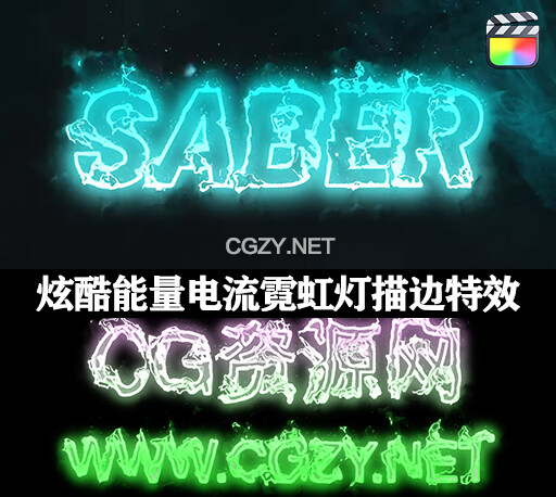 中文汉化FCPX插件|炫酷能量电流霓虹灯描边特效 SABER for Final Cut Pro