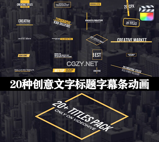 中文汉化FCPX插件|20种创意标题排版文字字幕条动画 Creative Animated Text