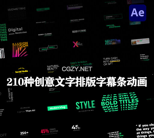 AE模板|210种现代创意霓虹灯文字排版渐变字幕条动画 Huge Title Pack