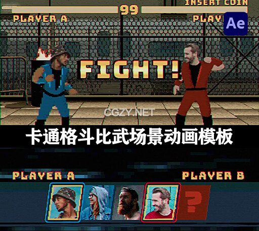 复古卡通格斗比武场景动画AE模板 Motion Fighter VS & Titles