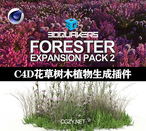 3DQUAKERS Forester是Maxon Cinema 4D的植物生长插件,包含4个模快,树木生成器,植物草地生成器,随机分布工具和石头生成器。