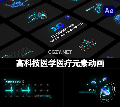 “Cyberpunk HUD Medical Elements” 是一款高科技医学医疗元素动画的AE模板,可以用于创建医疗主题的视频或动画。该模板包含了10种不同的医学医疗元素,包括心率图、药品瓶、血压计等等,可以满足不同场景的需求。以赛博朋克为主题的,它的视觉风格类似于未来科幻电影中的人机界面,非常独特。