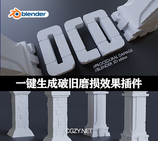 Ocd插件可以在Blender模板中快速的生成破旧磨损效果,Ocd插件使用也非常简单,只需选择模型,单击“Make Damage”,根据自己的喜好调整伤害的数量和数量,然后按“应用”按钮。