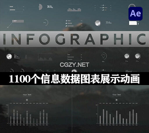 包含1100个不同的可视化元素和数据图表动画和ICON图标动画,可以帮助用户快速制作高质量的信息图表和数据可视化数据动画。