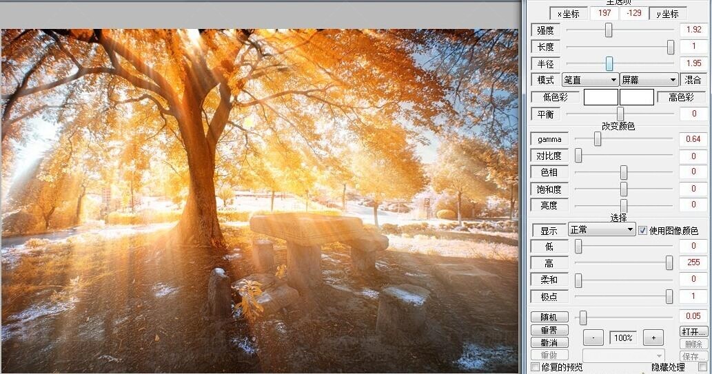 • 插件使用:打开PS,点击滤镜,找到光线大师,点击即可打开插件面板,然后面板里面有一些参数可以自行按照需要去调整。