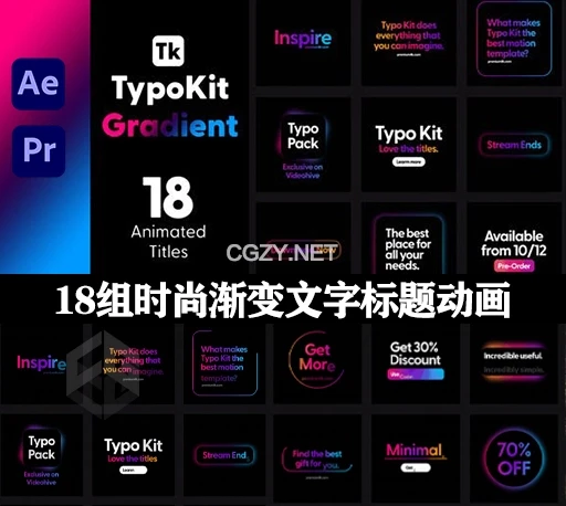 Typo Kit Gradient Titles是一个适用于 Adobe After Effects 的标题模板包,提供了一系列漂亮的渐变效果,可以帮助用户创建出具有视觉冲击力和专业质感的标题动画。
