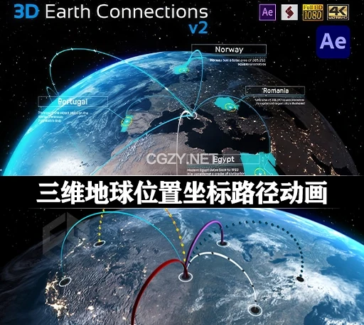 这是是一个逼真的三维地球路径动画模板,适用于制作科技、科幻、地理、旅游等主题的视频。提供了多种元素,如地球、线条、点等。