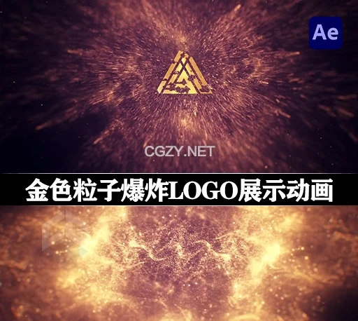 这是一款金色粒子爆炸LOGO标志展示动画AE模板,用于创建精美的标志展示动画。