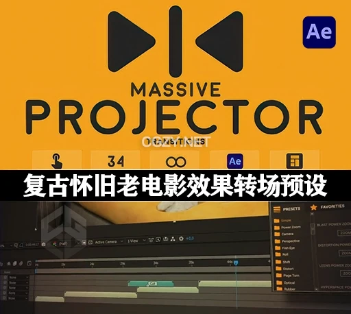 AE脚本|34组复古怀旧老电影效果转场预设 Massive Projector Transitions