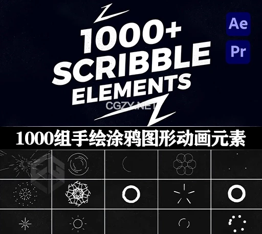 AE/PR模板|1000组手绘涂鸦线条素描元素动画 Scribble Elements