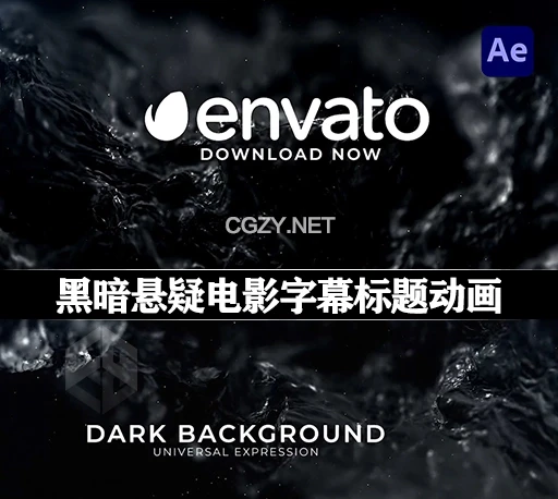 抽象电影标题模板,8 个预渲染场景、15 个文本占位符和 1 个徽标占位符,抽象3D深色背景和灰尘颗粒。