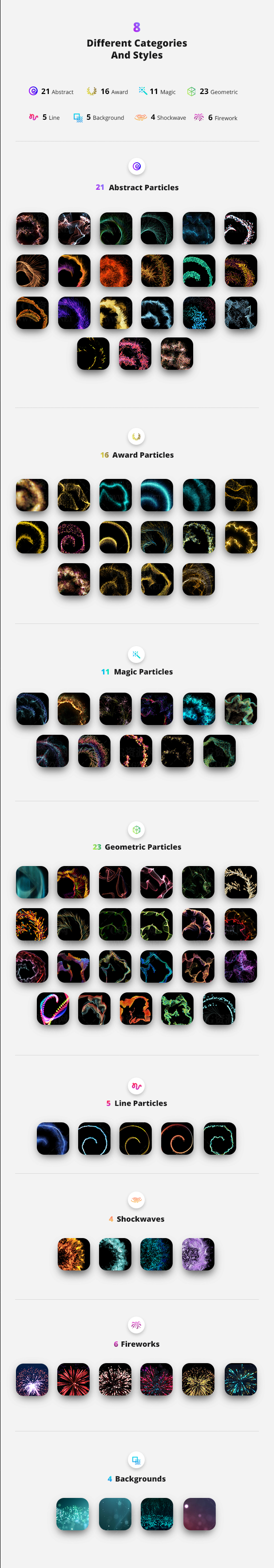 Magical Pack预设粒子魔法特效包,像烟雾、火焰、灰尘等特效都可以使用这款特效粒子插件来制作