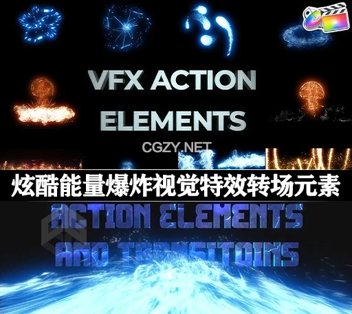 FCPX插件|炫酷能量粒子爆炸视觉特效转场元素 VFX Action Elements And Transitions