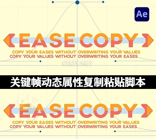 EaseCopy是一款关键帧动态属性复制粘贴AE脚本,允许您复制/粘贴关键帧的时候,能够选择不覆盖您的参数值或不会覆盖您的缓动效果。