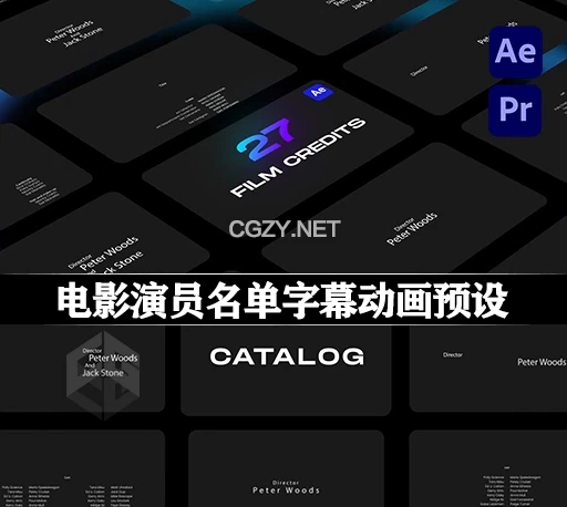 电影制作人员名单、演员和工作人员制作人员名单,用于制作预告片、电影标题、大片标题序列、纪录片、音乐视频,可以自定义字体,颜色。
