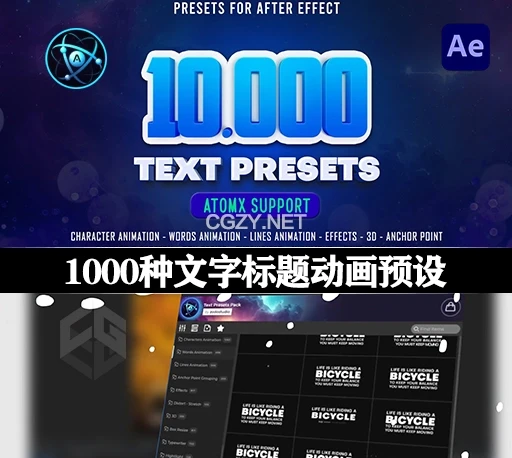 AE脚本|10000种文字缓入缓出MG动画标题抖音视频字幕特效预设 Atomx Text Presets V3