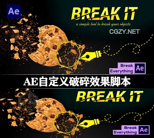 Break It!脚本是一个AE自定义爆炸、粉碎和破碎动画效果工具,您可以控制碎片的数量、重力、碎片间距等等。