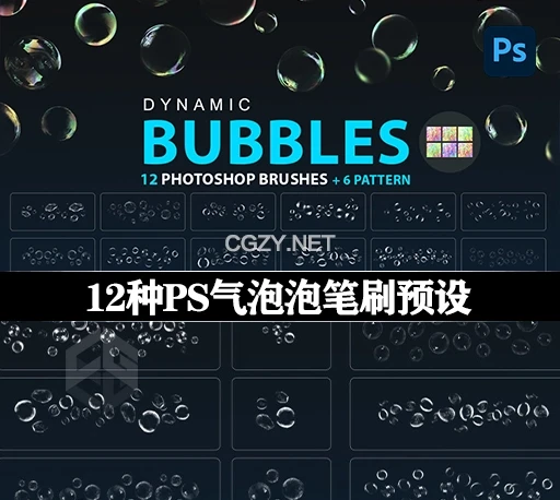 12个高品质动态水泡泡笔刷+6个图案,看看视频中的示例,您可以用泡泡绘画并更改泡泡颜色,立即获得彩色包!在几秒钟内为您的艺术、插图或其他项目创建专业的视觉效果!