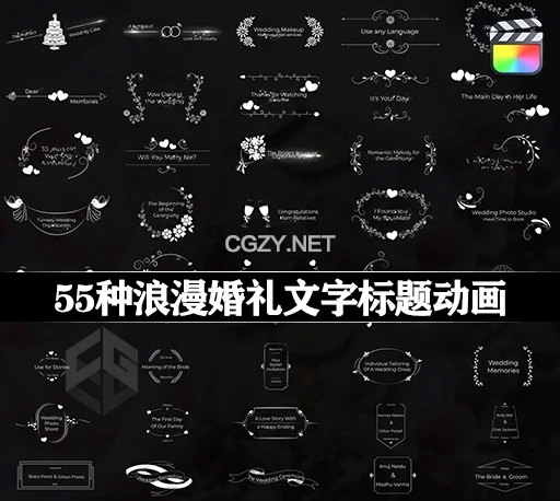 FCPX插件|55种浪漫婚礼新郎新娘姓名文字标题动画 Wedding Titles