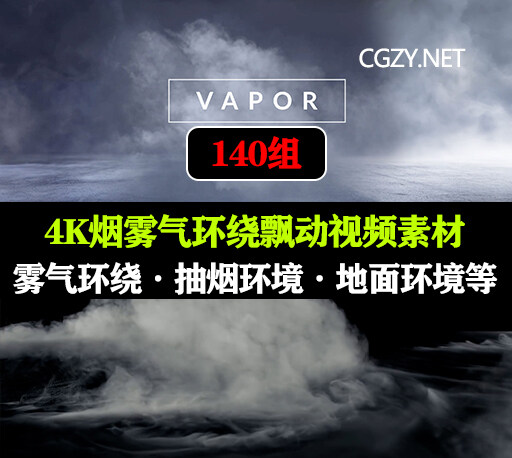 一共140组由RED摄像机拍摄的烟雾视频素材,例如雾气环绕、抽烟环境、地面环境等,不包含透明通道,软件混合模式改成Add(叠加)即可去黑底