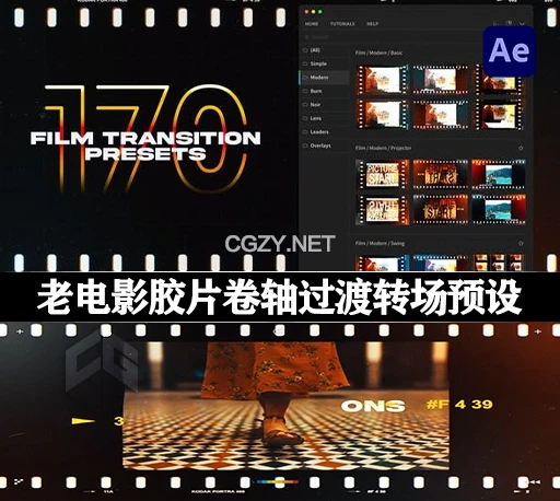 包含170组复古老电影胶片卷轴效果转场预设,支持AE和PR使用MYFX扩展脚本可视化调用,需要什么效果双击即可生成,包含转场音效。项目附带颜色和效果控制器。它使您能够真正自定义镜头之间的过渡。