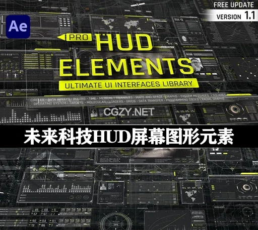 Pro HUD Elements Pack是一组即用型未来图形元素、技术显示、图标、加载程序、地图等等…