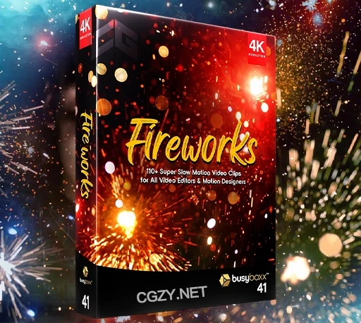 BusyBoxx V41 Fireworks包含115个4K实拍夜空七彩绚丽元旦春节新年新春祝福烟花视频素材。素材没有透明通道,可修改混合模式(屏幕/滤色)即可与你的视频素材叠加使用。