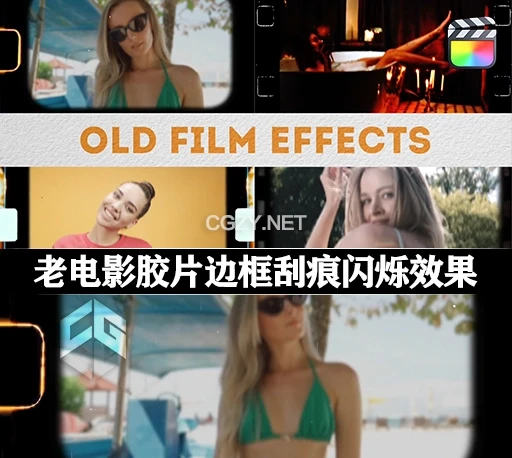 包含了10种叠加老电影框架、划痕、灰尘颗粒效果,使用简单,拖拽到视频上即可。