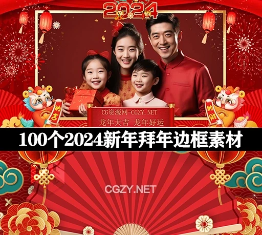 视频素材|100个2024龙年新年拜年边框动画素材(含透明通道)