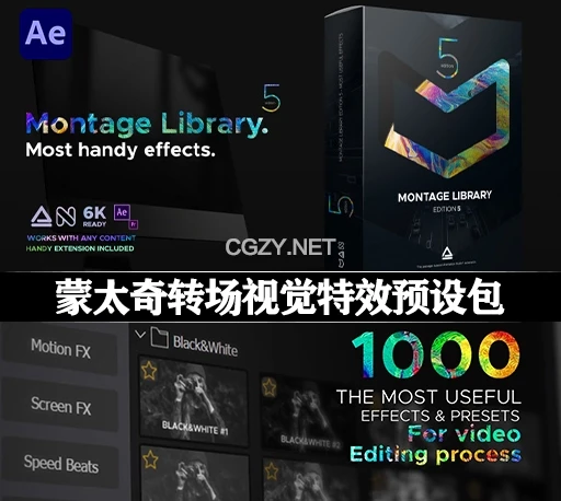 AE脚本|1000+蒙太奇转场视觉特效预设包 Montage Library – Most Useful Effects